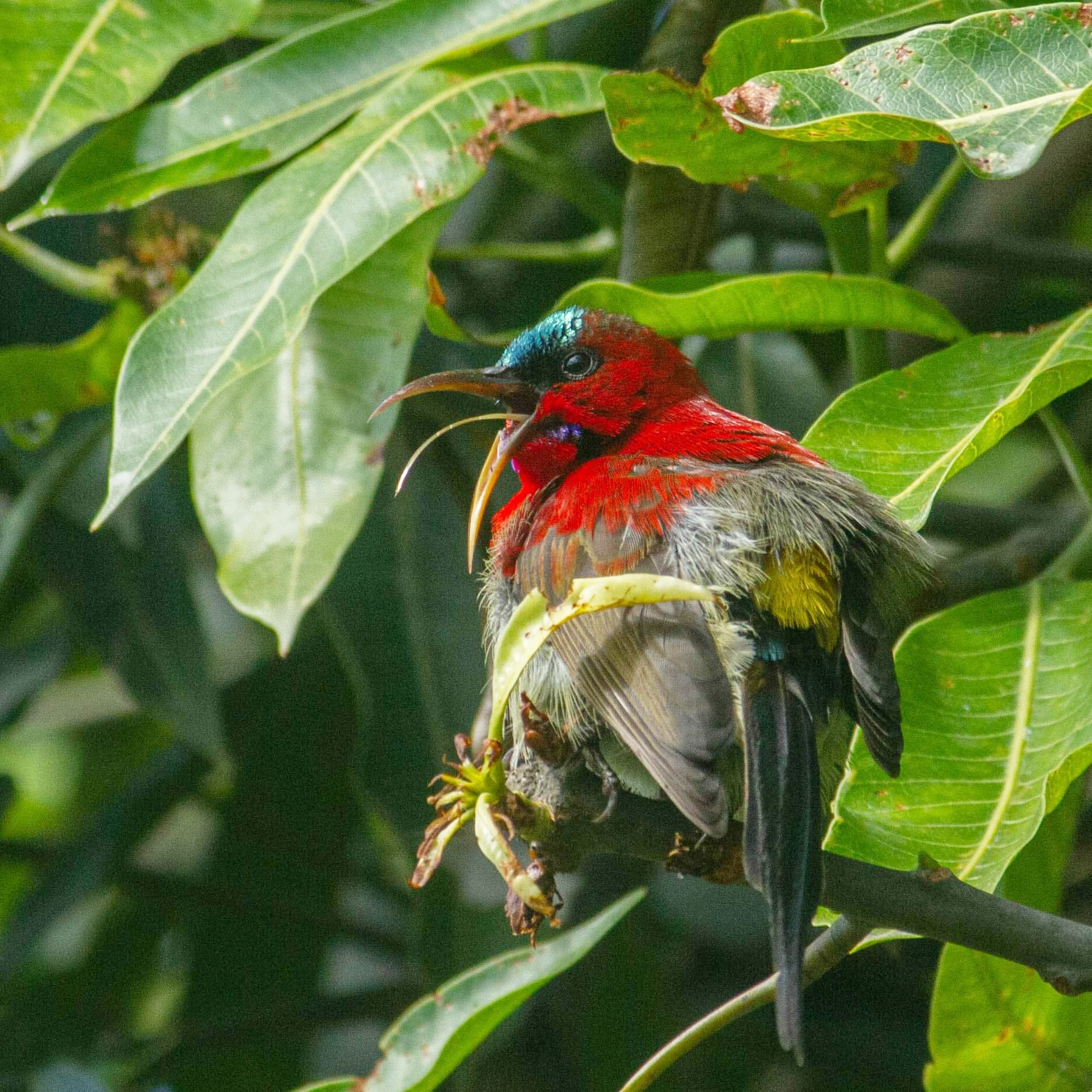The weather’s been moody. A raging cyclone on the west coast in mid may, and we had a visitor from cooler environs here north in Dehradun. I know crimson sunbird from the winters. This young one is preening and basking in the sun after the showers. He wouldn’t know of the hurricane, would he. The Tropical Cyclone Tauktae is the strongest storm on record to hit the Indian coast. Bang in between the Covid crisis, it has been a much bigger disaster. All we got to experience of it were a few rainy days.